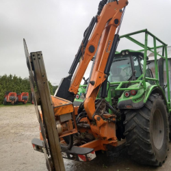 Environ 5000 h / Groupe de broyage profil Fonsor 1m20 82 CH / Pivot 120° / Attelage semi auto des outils / Possibilité châssis pour Deutz Agrotron / Possibilité lamier Kirogn 4 élements 2m14 à 4 scies D.700 + plateaux à double couteaux mobiles / possibilité vente de l’ensemble complet avec tracteur Deutz-Fahr Agrotron 6155 2021 5000h